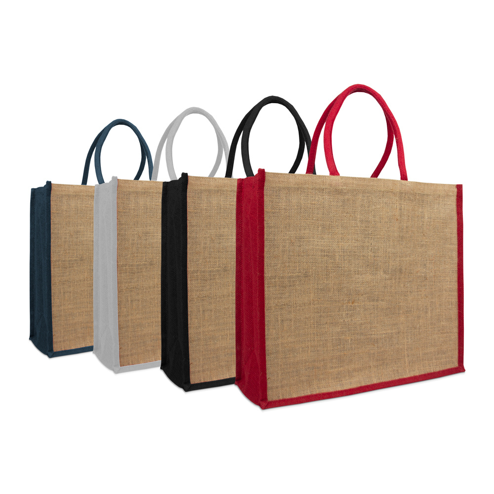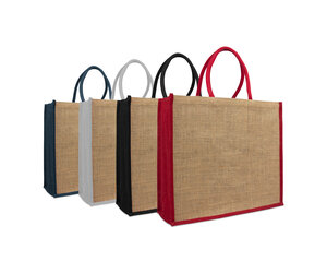 Wilt u direct ecologische tassen bestellen? Kies dan voor jute met gekleurde koorden en zijvouwen met of zonder bedrukking.
