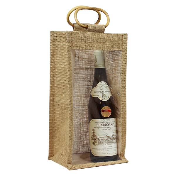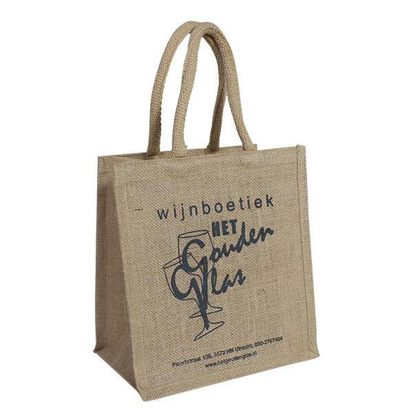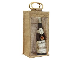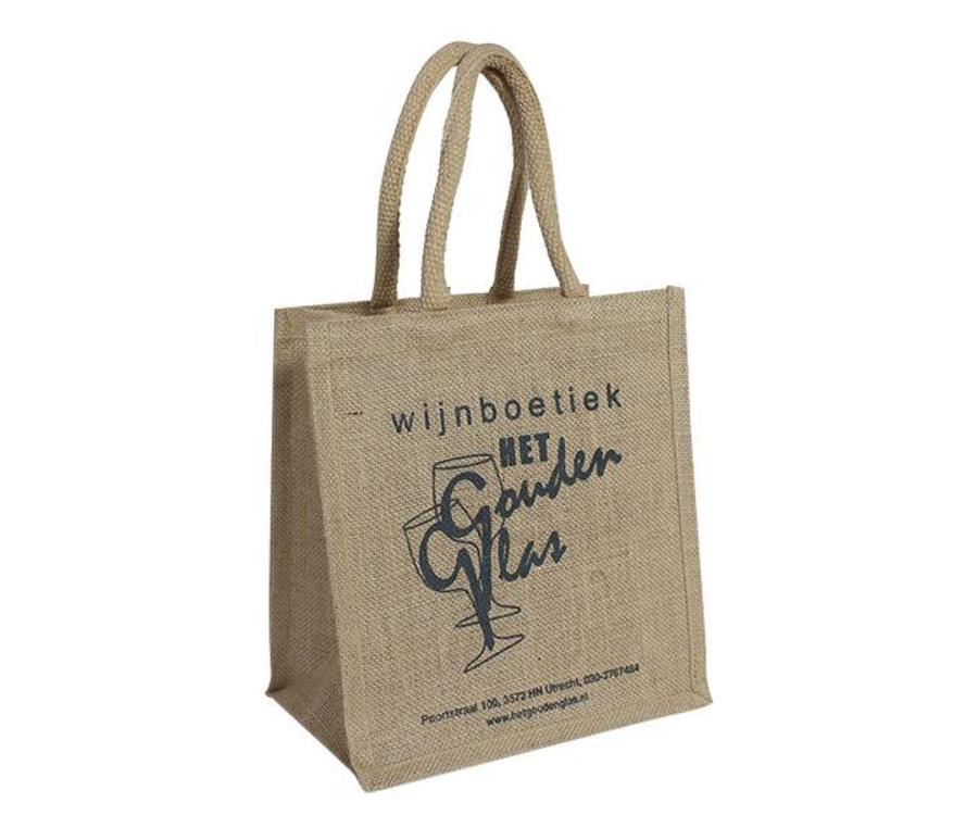 Jute wijnfles draagtas bedrukt met uw logo ca. 12 á 14 weken
