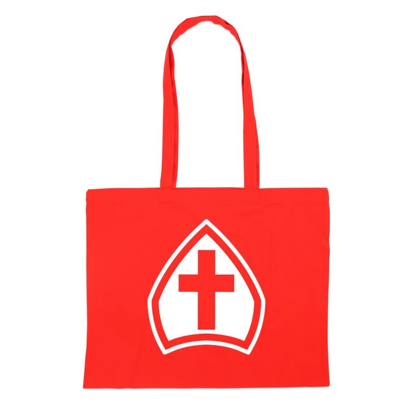 Bent u voor Sinterklaas op zoek naar een opvallende katoenen tas waar u veel cadeaus in kunt opbergen? Onze Sint tote bags - Mijter zijn uitgevoerd in stijlvol rood katoen, met enkelzijdig een witte opdruk van de mijter van Sinterklaas. Deze tas is stevig, duurzaam, en ideaal voor hergebruik, waarmee u direct bijdraagt aan een milieuvriendelijke keuze.