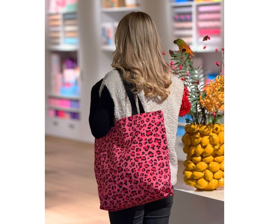 De katoenen panter tote bag is de speelse zus van de leopardtas. De roze Pink Panter print trekt direct de aandacht en geeft uw merk een frisse, moderne uitstraling.