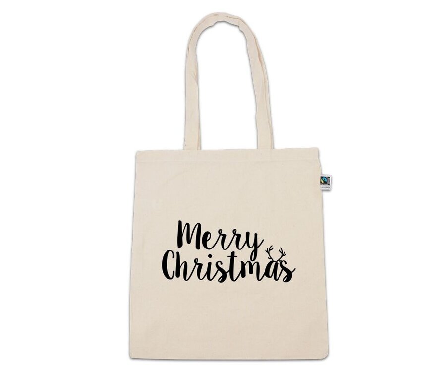 Katoenen Wit Fairtrade !! Draagtassen Merry Christmas