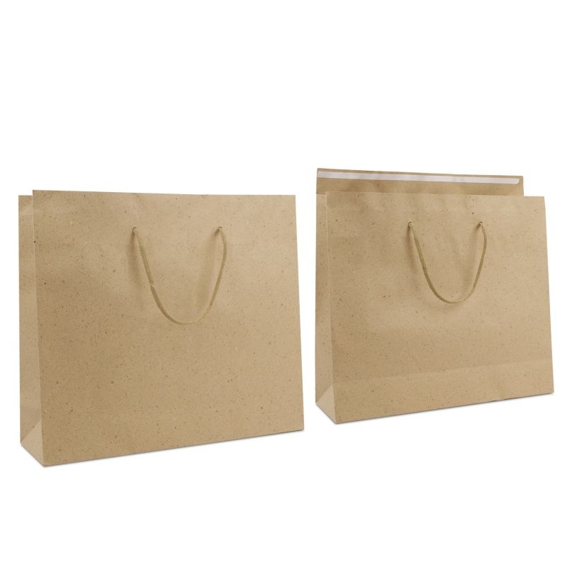 Ontdek onze luxe papieren tassen met klep: een stijlvolle, duurzame en functionele verpakkingsoplossing voor een verzorgde presentatie van uw producten. Gebruik de tassen als gewone draagtassen of sluit ze eenvoudig af met de praktische klepsluiting