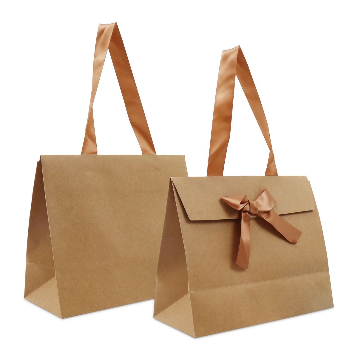 Deze stevige papieren klep draagtasje is gemaakt van 180 grams bruin Kraft papier. Deze multi-functionele draagtasje is aan de bovenkant afgewerkt met een klep en strik.