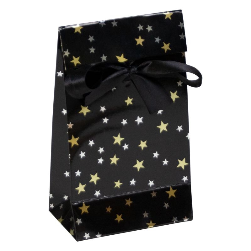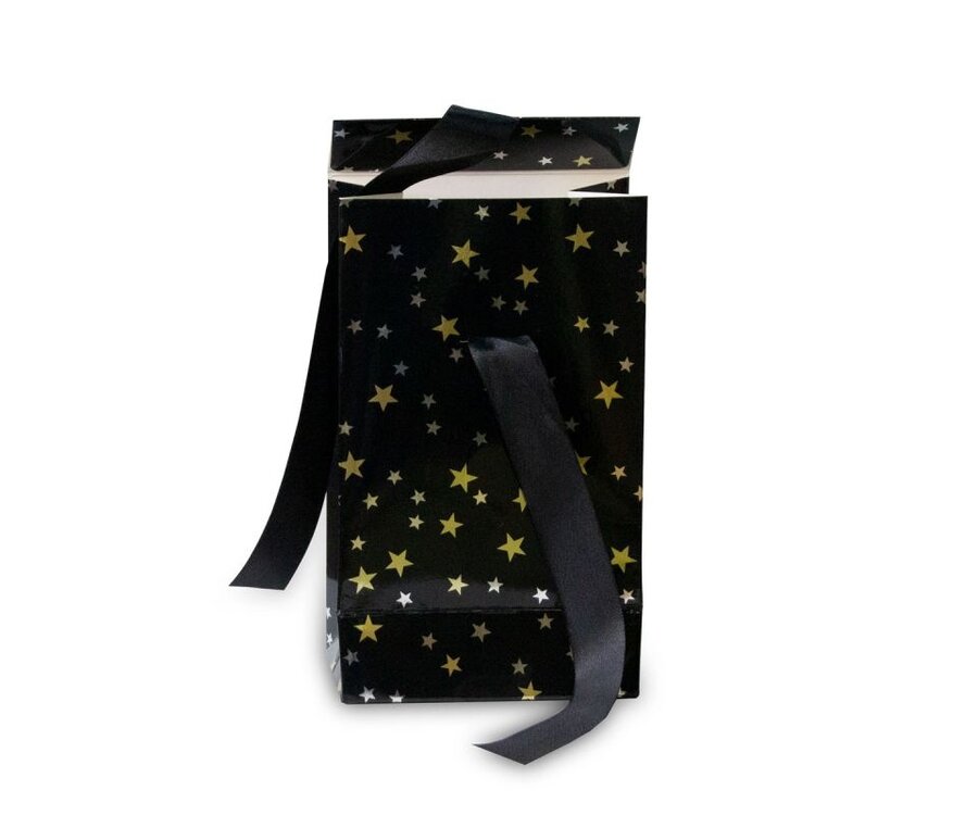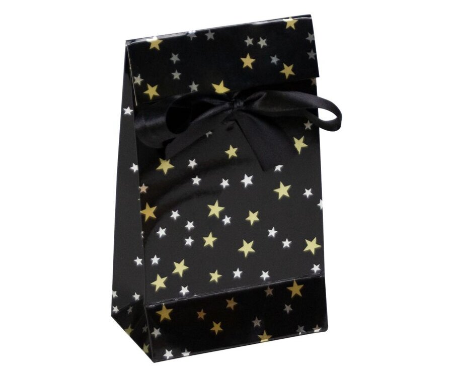 Wilt u verpakkingen voor uw kerstcadeaus en geschenken bestellen? Kies dan luxe papieren kerstgeschenkzakjes - Stars. Deze luxe papieren kadotassen zijn gemaakt van zwart papier en zijn afgewerkt met een glans laminaat. Deze kadotasjes zijn voorzien van een satijnen strikje om het geschenkzakje mee af te sluiten. Luxe papieren kerstgeschenkzakjes met strik zijn direct vanuit voorraad leverbaar.
