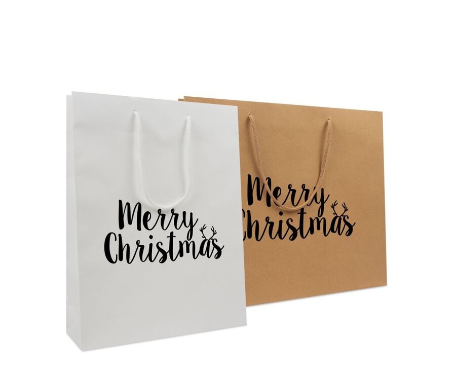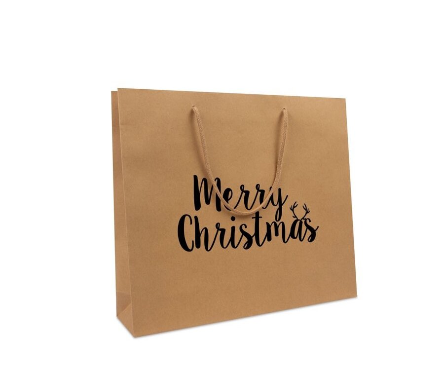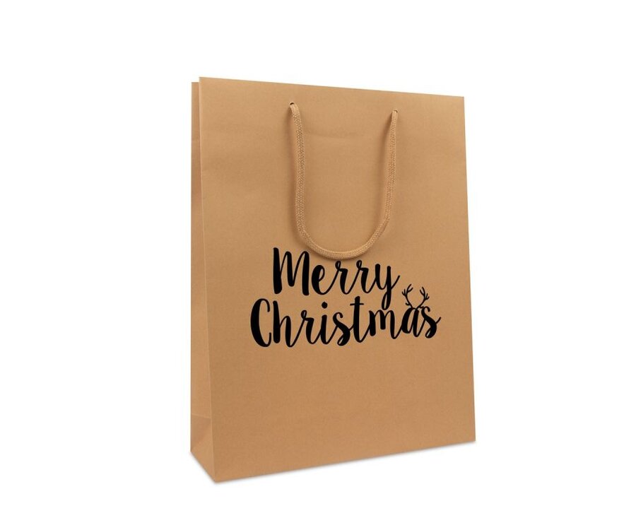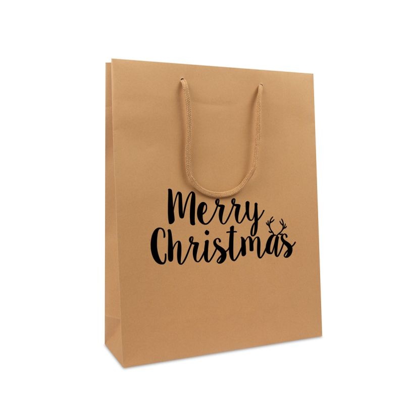 Papieren Kerst draagtas met koord Merry Christmas Bruin