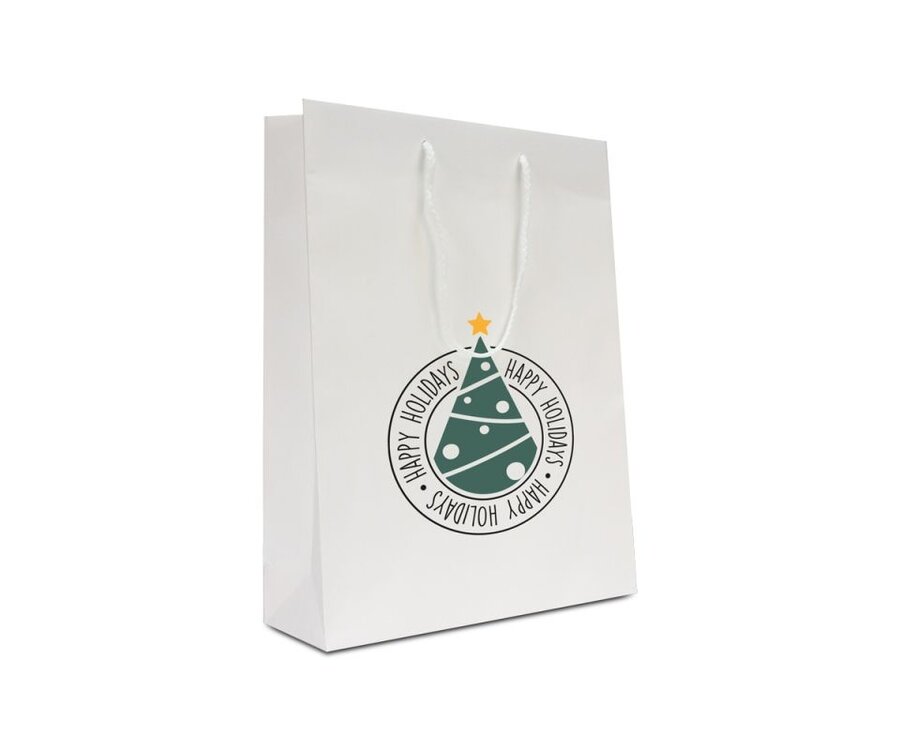 Deze luxe papieren tassen zijn gemaakt van 180 grams wit kraft papier. De tassen zijn van natuurlijke materialen en op een ecologische manier geproduceerd.