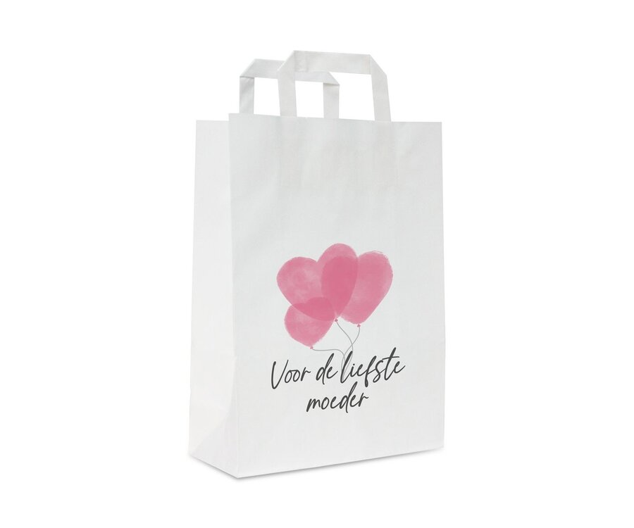 Papieren lus draagtas wit Kraft - Voor de liefste moeder