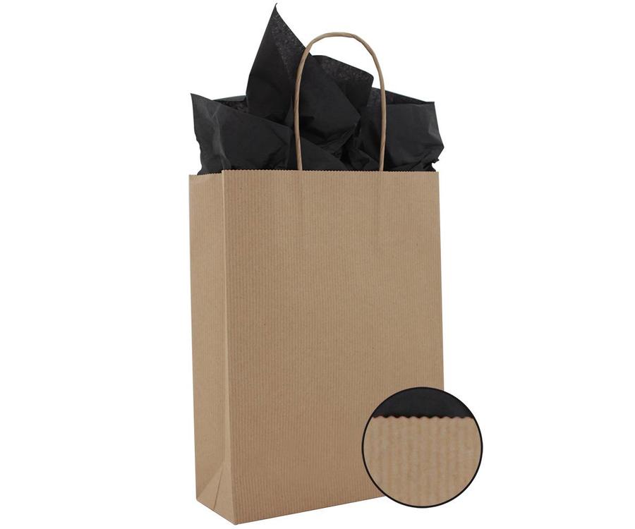 Deze stevige papieren draagtas is gemaakt van 120 grams Kraft papier. De bodem is versterkt met een extra laag bodemkarton. Hierdoor kan deze papieren draagtas meer gewicht dragen en vaker worden gebruikt. Deze multi-functionele draagtas heeft mooie gedraaide papieren koorden in dezelfde kleur als de tas en is aan de bovenkant afgewerkt met een subtiele kartelrand voor meer gebruiksgemak. Verkrijgbaar in diverse maten en kleuren.