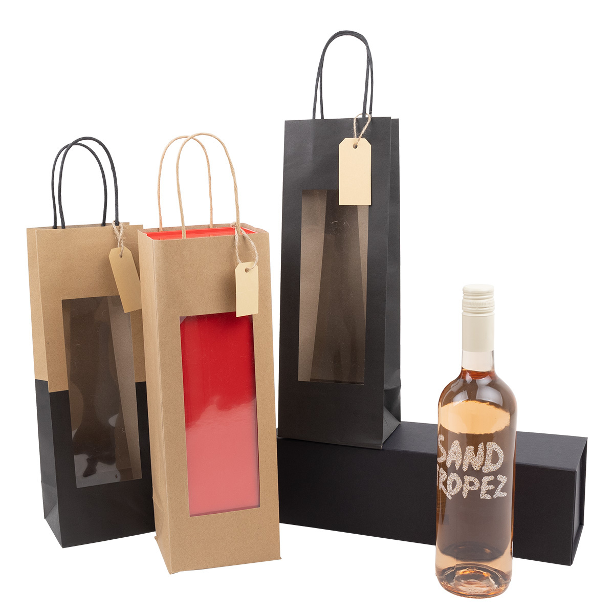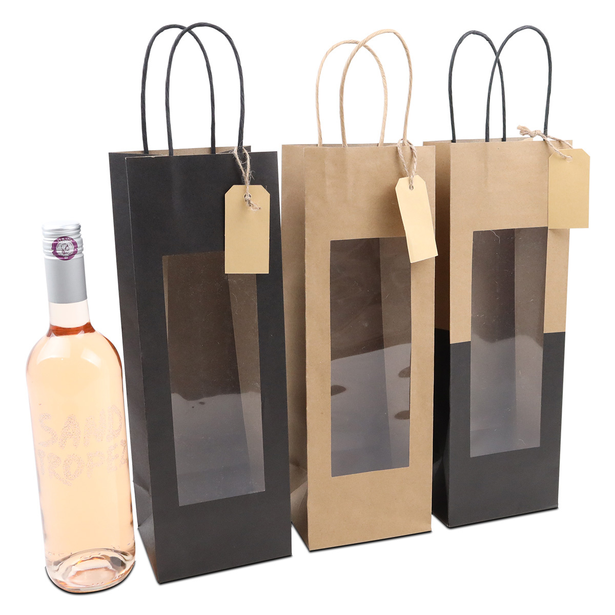 Deze twisted draagtas is gemaakt van 120 grams bruin Kraft papier met gedraaide handgreep in kleur zwart/bruin . Plus voorzien van een tag aan de handgreep en een transparant venster.