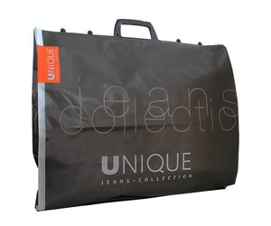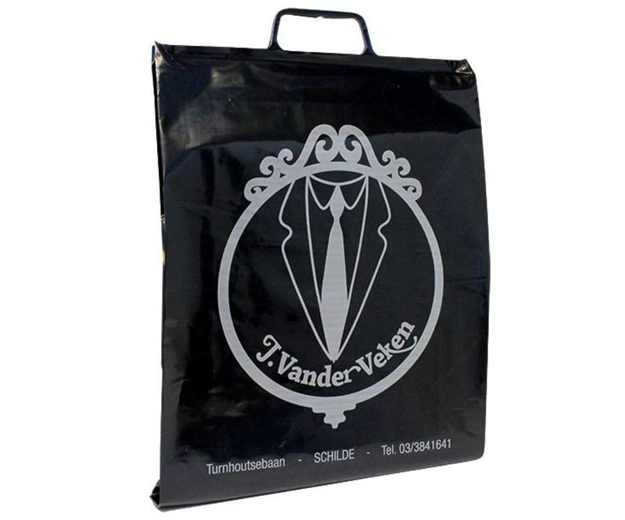 Deze luxe plastic beugel draagtas is voorzien van een plastic beugel, de draagtas kan geleverd worden in verschillende formaten en meerdere kleuren te bedrukken.