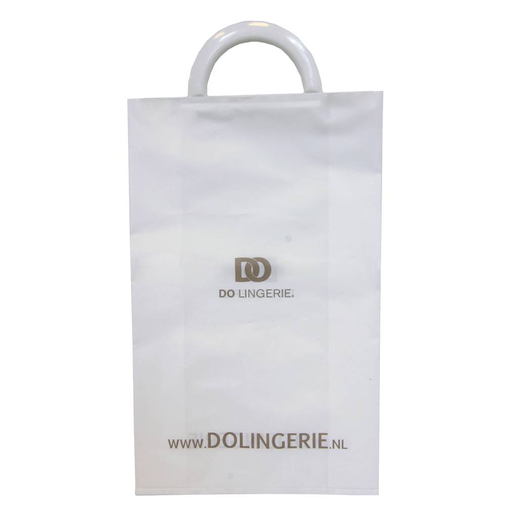 Plastic beugel draagtas bedrukt met uw logo ca. 10 á 12 weken