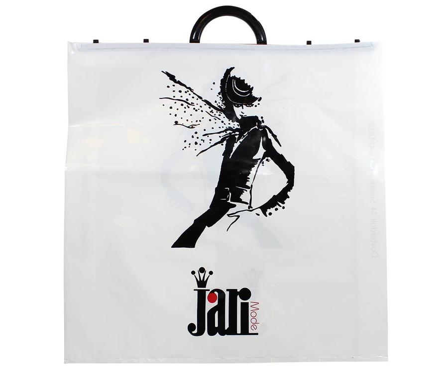 Deze luxe plastic beugel draagtas zijn voorzien van een plastic beugel, de draagtas kan geleverd worden in verschillende formaten en meerdere drukkleuren.