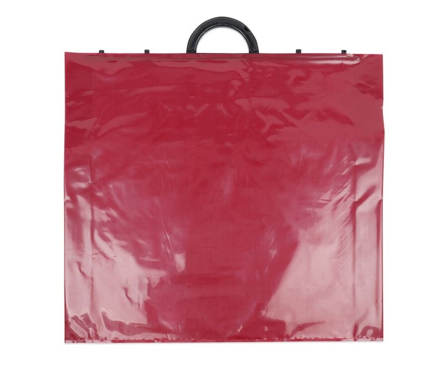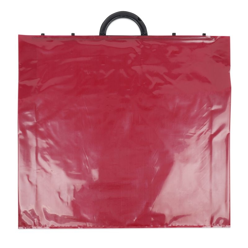 Deze sterke draagtas is gemaakt van 150 micron LDPE plastic en heeft een brede sluiting met beugel handgreep. De tas wordt door het grote formaat vooral veel gebruikt in de kledingbranche.
