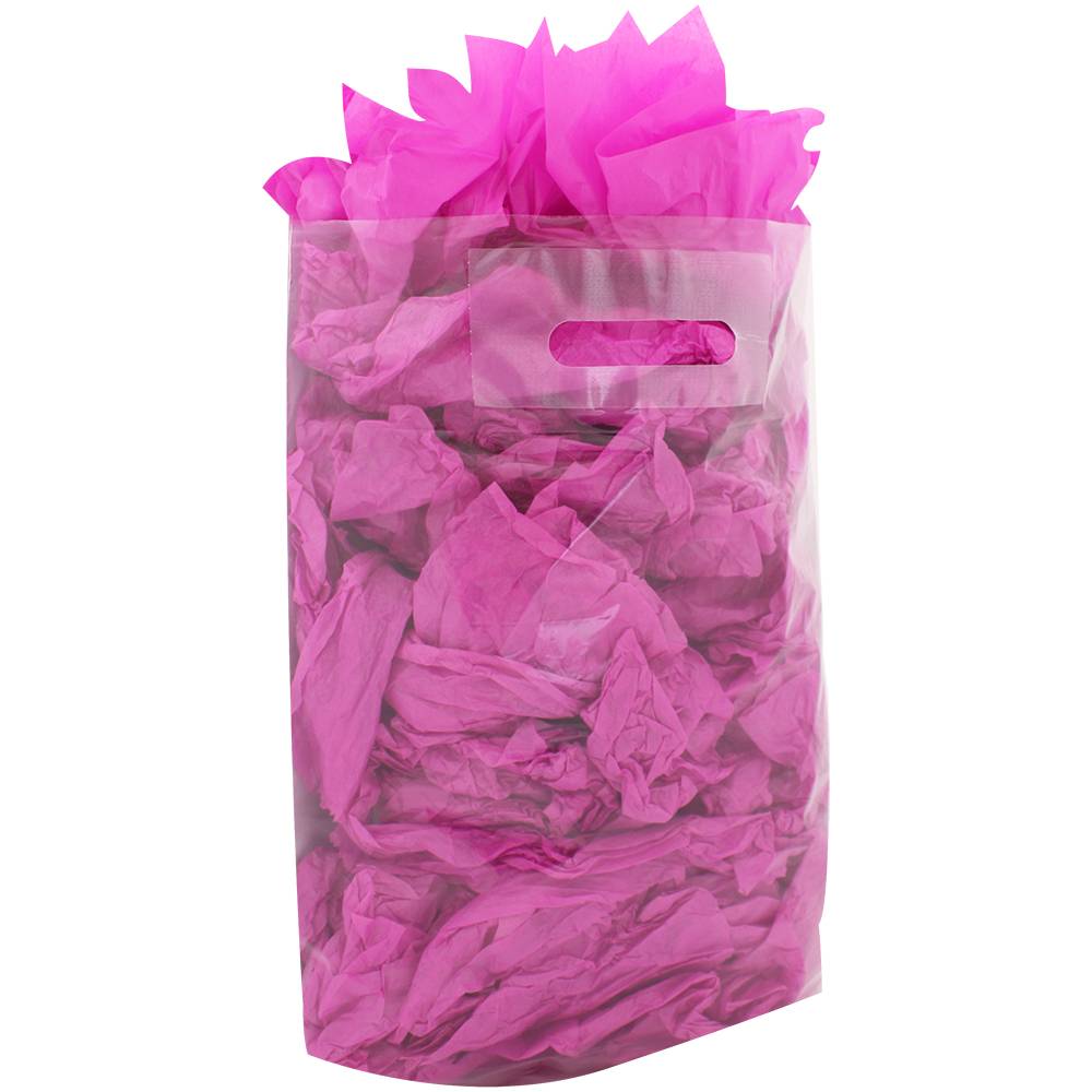 Deze stevige draagtas is gemaakt van 40 of 50 micron LDPE plastic. De gestanste handgreep is versterkt met een extra laag plastic waardoor de tas niet snel scheurt en prettiger draagt.