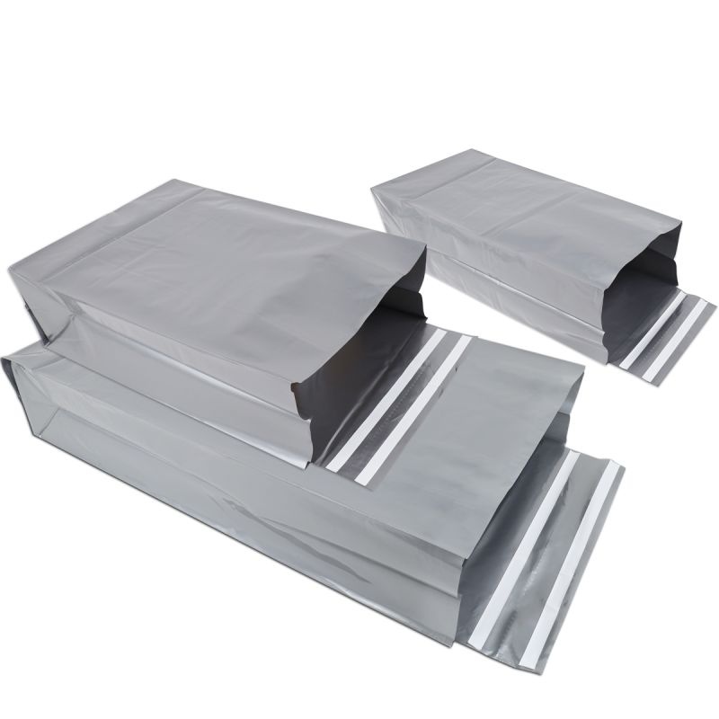 Plastic verzendzak brede bodem Zilver verpakt á 125 stuks vanaf € 0,55 per stuk