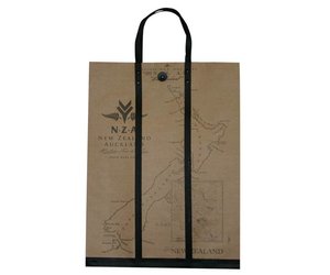 Schitterende vintage paper post bag. Voorzien van een postsluiting met twee doorlopende platte ribben hengsels. Aan de onderzijde vast gestikt. Uitstekend te bedrukken.