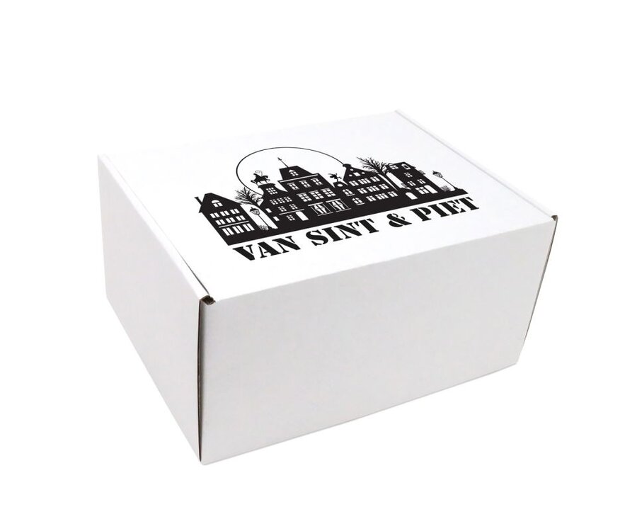 Geef of verzend dit jaar uw Sinterklaasgeschenken in stijl met de Verzenddoos - Van Sint & Piet. Deze stevige doos is beschikbaar in wit en bruin in het formaat 33 x 25 x 8 cm. Ideaal voor het verpakken van lekkernijen, cadeaus of promotionele items. De doos is uitgevoerd in het populaire FEFCO 0427 model, wat zorgt voor een eenvoudige vouwwijze en veilige sluiting.