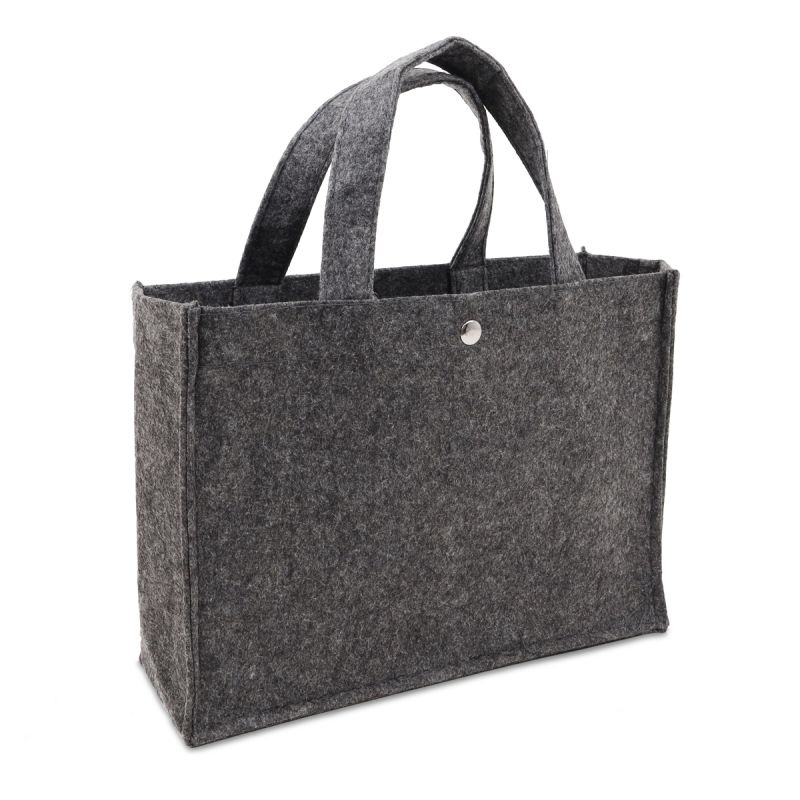 Deze stijlvolle draagtas is gemaakt van een 220 grams vilt, draagt comfortabel en sluit met een handige drukknoop. Vilt is sterk en zorgt dat alle inhoud goed beschermd wordt.