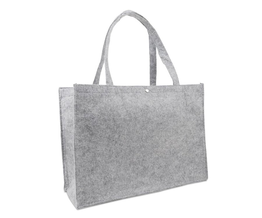 Deze stijlvolle draagtas is gemaakt van een 220 grams vilt, draagt comfortabel en sluit met een handige drukknoop. Vilt is sterk en zorgt dat alle inhoud goed beschermd wordt.