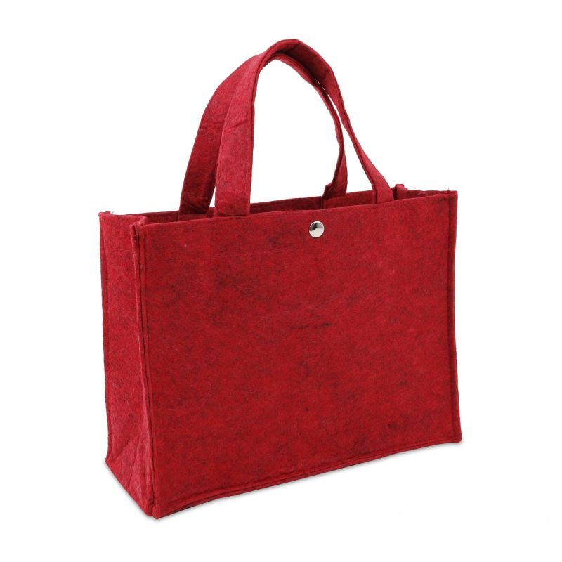 Deze stijlvolle draagtas is gemaakt van een 220 grams vilt, draagt comfortabel en sluit met een handige drukknoop. Vilt is sterk en zorgt dat alle inhoud goed beschermd wordt.