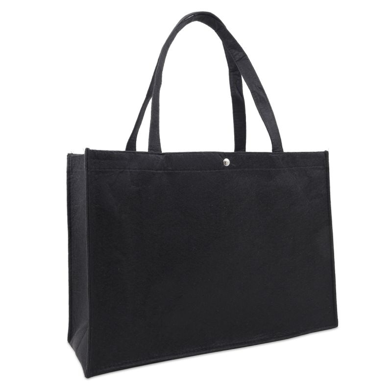 Deze stijlvolle draagtas is gemaakt van een 220 grams vilt, draagt comfortabel en sluit met een handige drukknoop. Vilt is sterk en zorgt dat alle inhoud goed beschermd wordt.