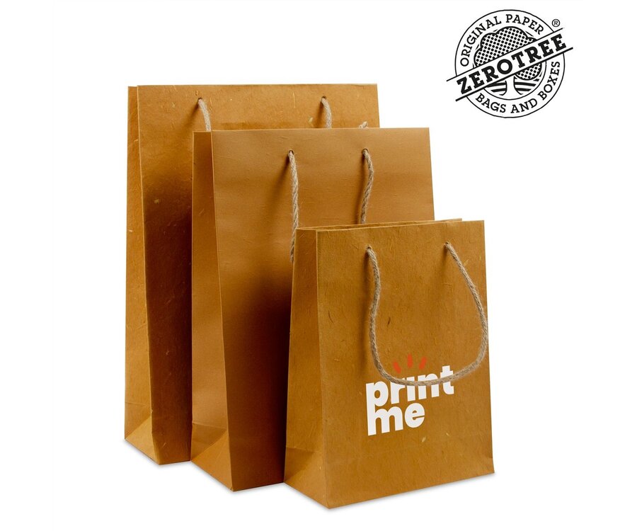 Zero Tree draagtassen lijken sterk op gerecycled papier maar zijn in feite hoofdzakelijk gemaakt van katoenresten. De vervaardiging is arbeidsintensief maar levert een prachtige draagtas op met een zeer natuurlijke uitstraling.