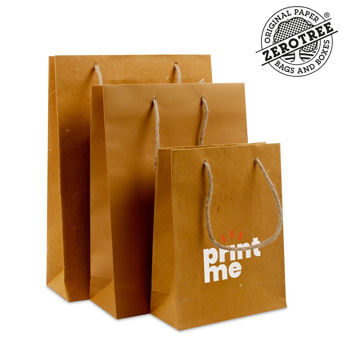 Deze 100% milieuvriendelijke Zero Tree papieren draagtas wordt in India gemaakt van katoenen stofresten en heeft een extra stevige bodemlaag. De koorden zijn van jute restmateriaal.